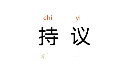 引《史记·张释之冯唐列传》:“中尉 条侯 周亚夫 与 梁 相 山都侯 王恬开 见 释之 持议平,乃结为亲友。”《新唐书·李珏传》:“三人者居中秉权,乃与 郑覃、陈夷行 等更持议,一好恶,相影私,朋党益炽矣。”宋 叶适 《参议朝奉大夫宋公墓志铭》:“自 郑景望 兄弟、 薛士隆、陈君举,持议精立,号有芒鍔。”