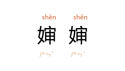 ⒈ 称谓:(1) 叔母。(2) 嫂称弟妇。(3) 称呼与母亲辈分相同,但年纪较小的已婚妇女。