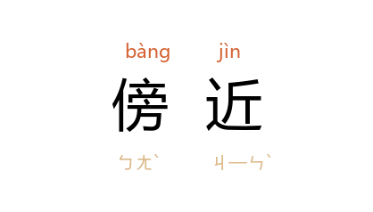 引宋 蔡絛 《铁围山丛谈》卷四:“鲁公 在从班时,以 赵安定王 甲第傍近宫闕,便謁见,因僦止焉。”《儿女英雄传》第十五回:“那时众人都出房来,远远的围了个大筐箩儿站着。便是我自己的人,也因我有话在前,不敢傍近。”