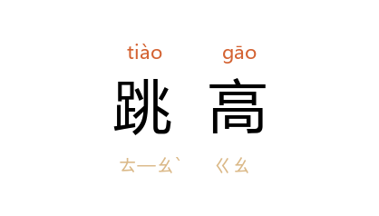 ⒊ 田径运动项目之一,有急行跳高、撑竿跳高、立定跳高三种,前两种是正式比赛的项目。通常指急行跳高,运动员按照规则通过助跑后跳过横杆。
