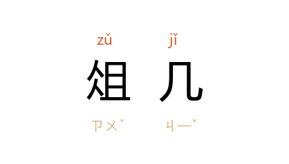 ⒉  俎形如几,故称。古代祭祀、燕飨时所用的礼器。