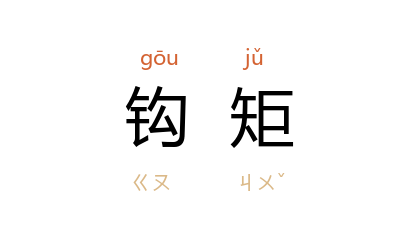 ⒈ 亦作“钩矩”。即规矩。圆规和曲尺。