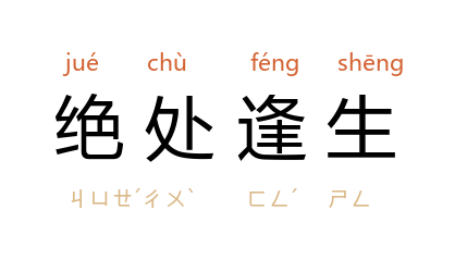 解释:绝处:死路。形容在最危险的时候得到生路。出处:元·关汉卿《钱大尹知勘绯衣梦·正名》:“李庆安绝处幸逢生。”