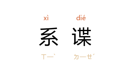 ⒈ 记载世系的谱牒。谍,通“牒”。 章炳麟 《訄书·序种姓下》:“明太祖 革虏姓,令就 汉 族。