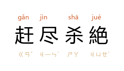 ⒈ 驱逐斩杀,消灭干净。泛指对人残忍狠毒,不留余地。