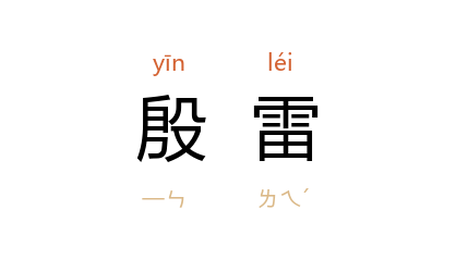 引汉 王延寿 《鲁灵光殿赋》:“动滴沥以成响,殷雷应其若惊。”晋 葛洪 《抱朴子·吴失》:“殷雷輷磕於龙潜之月,凝霜肃杀乎朱明之运。”唐 温庭筠 《公无渡河》诗:“黄河 怒浪连天来,大响谹谹如殷雷。”《清史稿·灾异志一》:“东莱 清岭 鸣声如殷雷。”臧克家 《运河》诗:“晴天里铁锹闪起了电火,一串殷雷爆响在心窝。”