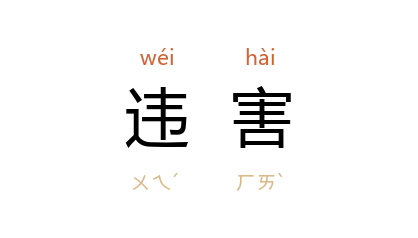 引《庄子·齐物论》:“圣人不从事於务,不就利,不违害,不喜求,不缘道。”唐 柳宗元 《驳复仇议》:“趋义者不知所向,违害者不知所立。”宋 陈师道 《上苏公书》:“盖势在则欺之以为功,势同则夺之以自利,势去则背之以违害,使之且难,况同之乎?”