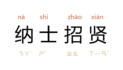 引《青衫泪·第二折》:「可不道吏部文章二百年,甚些的纳士招贤。」《孤本元明杂剧·薛苞认母·第四折》:「贤士有如此博学广文,高才大德,见如今圣人纳士招贤,何不进取功名。」