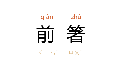⒈ 进餐时座前的筷子。《汉书·张良传》:“汉王曰:'何哉?'良曰:'臣请借前箸以筹之。'”颜师古注引张晏曰:“求借所食之箸,用指画也。”《汉纪·高祖纪二》作“前筯”。后谓为人筹画为“借箸”或“前箸”。
