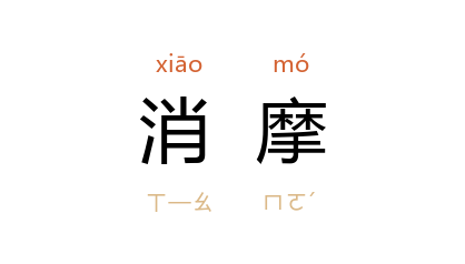 引香 曰:‘消摩自可愈疾,淫祀无益。’ 兰香 以药为消摩。”明 张萱 《疑耀·消摩》:“余意消摩,按摩也,今治病者有按摩之术。”清 周亮工 《书影》卷十:“余谓消摩,自是导引按摩之意。”