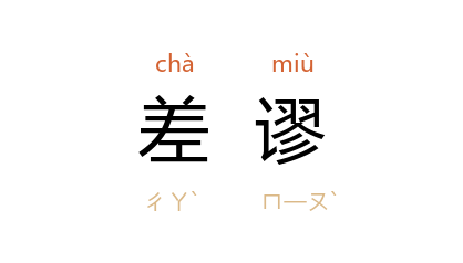 引《后汉书·独行传·陆续》:“事毕, 兴 问所食几何? 续 因口説六百餘人,皆分别姓字,无有差谬。”《新唐书·崔善为传》:“督工徒五百营 仁寿宫,总监 杨素 索簿閲实, 善为 执板暗唱,无一差谬。”清 蒲松龄 《聊斋志异·珊瑚》:“主疑似旧金,以翦刀断验之,纹色俱足,无少差谬。”