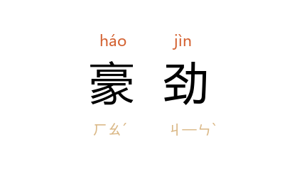 引宋 黄庭坚 《书右军<文赋>后》:“李翘 叟出 褚遂良 临 右军 书《文赋》,豪劲清润,真天下之奇书也。”元 姚燧 《皇元故王公神道碑铭》:“羣盗利之,自王自公,凡在胜国,敢曰难令,与今吾元,跳踉豪劲。”