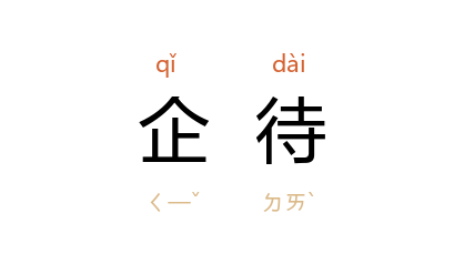 引清 龚自珍 《<陈硕甫所著书>序》:“整齐益整齐,企待益企待,总之必不为虚待,无岐谬。”冰心 《三寄小读者》七:“她还客气地说,为了有助于她们对今日 中国 的了解,团员们都极其兴奋地企待着这一次会见。”