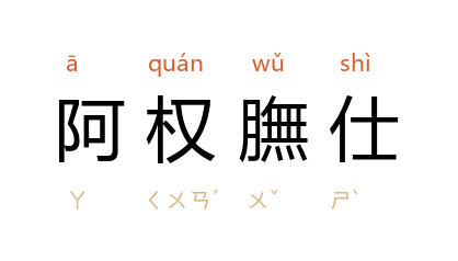 [ ā quán wǔ shì ]