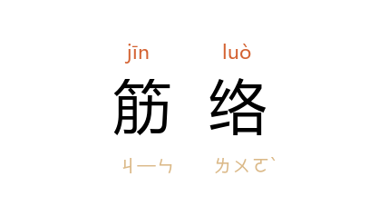 ⒈ 与骨节相连的肌肉,称为「筋络」。