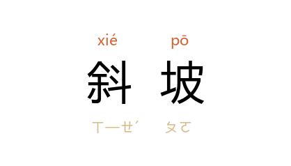 洪深 《戏的念词与诗的朗诵》六:“说时却可从一个音高溜滑至另一个音高--一路滑去,音音相连,不见间隔,如走斜坡。”