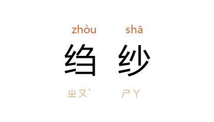 引《宋史·地理志四》:“亳州,贡縐纱、绢。”《儿女英雄传》第四回:“﹝公子﹞回头一看,只见他头上罩着一幅元青縐纱包头,两个角儿搭在耳边,两个角儿一直盖在脑后燕尾儿上。”
