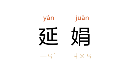 ⒈ 相传为周时东瓯所献才女名。据晋王嘉《拾遗记·周》载:周昭王二十四年,东瓯献二女,一名延娟,一名延娱。此二人辩口丽辞,巧善歌笑,步尘上无迹,行日中无影。后二女与昭王乘舟,同溺于汉水。
