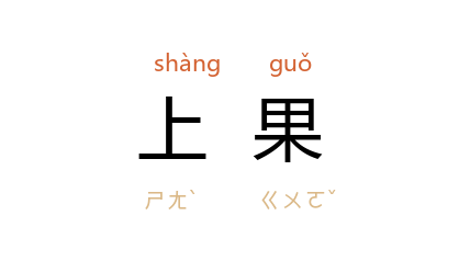 引汉 班固 《汉武帝内传》:“王母 自设天厨,真妙非常。丰珍上果,芳华百味。”明 汤显祖 《匡山馆赋为友人豫章胡孟弢作》:“朝飢则 平湖 上菓,瞑暗则 弥山 佛灯。”