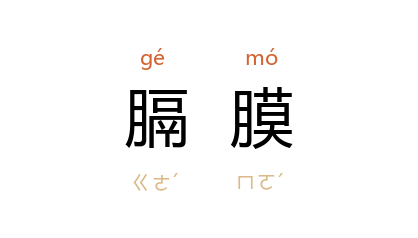 ⒈ 哺乳动物体腔中分隔胸腔和腹腔的膜和肌肉。其收缩和松弛会形成呼吸现象,并与哭泣、呕吐、打嗝、咳嗽等动作的进行有关。