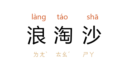 ⒉ 词牌名。唐教坊曲。本七言断句,至李煜制两段令词,名浪淘沙令。而柳永、周邦彦别作慢词,名浪淘沙慢。