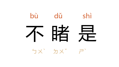 ⒈ 糊里糊涂,不明事理。元·姚守中〈粉蝶儿·性鲁心愚套·十二月〉曲:「被这厮添钱买我离桑枢,不睹是牵咱过前途。」元·张养浩〈寨儿令·干送行〉曲:「来与去不曾停,几曾经,不睹是的晋渊明。」也作「不赌是」。