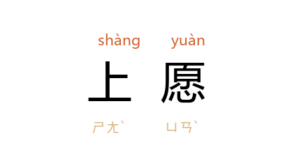 引《战国策·燕策三》:“此 丹 之上愿,而不知所以委命,惟 荆卿 留意焉。”晋 袁宏 《后汉纪·献帝纪》:“安国家,吾之上愿也;若其不获,则杀身以奉朝廷。”南朝 梁元帝 《金楼子·立言上》:“尽忠尽力以报国家,此我之上愿焉。”