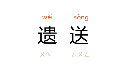 引宋 孟元老 《东京梦华录·重阳》:“前一二日,各以粉麵蒸餻遗送,上插剪綵小旗,掺飣果实,如石榴子、栗子黄、银杏、松子肉之类。”宋 吴自牧 《梦粱录·二月》:“民间尚以青囊盛百穀、瓜果子种,互相遗送。”