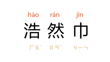引《儒林外史·第二四回》:「只见外面又走进一个人来,头戴浩然巾,身穿酱色䌷直裰。」