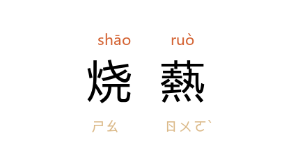 引晋 干宝 《搜神记》卷二:“又取书纸及绳缕之属投火中,众共视之,见其烧爇了尽。”唐 赵元一 《奉天录》卷一:“时 李日月 兇威甚鋭,烧爇陵庙,帝甚患之。”《旧唐书·崔损传》:“昭陵 旧宫在山上,置来岁久,曾经野火烧爇,摧毁略尽。”