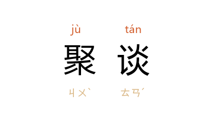 引《宋史·韩维传》:“臣下折简聚谈,更相督责,乃是相率为善,何害於理?”苏曼殊 《碎簪记》:“吾毕此稿,即来共子聚谈。”郁达夫 《追怀洪雪帆先生》:“自从这一次的同船之后,我和 孤帆,反而见面的时候不多,但与 洪先生,却每年总有几次在一道吃饭或聚谈的机会。”