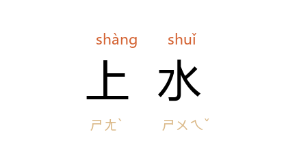 英语Sheung Shui (area in Hong Kong), upper reaches (of a river), to go upstream, to add some water, to water (a crop etc)