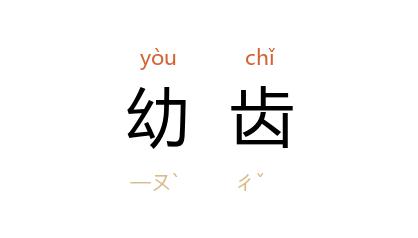 例如:「警方查获色情应召站,竟然发现有未满十二岁的幼齿坐台。」