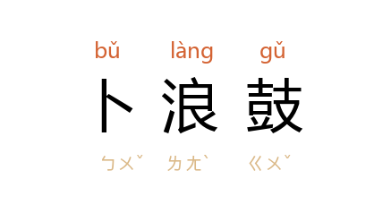 引陈伯吹 《小珍看蛟去》:“卖货郎一边揩着头上的汗,一边还摇着卜浪鼓。”杜鹏程 《记一位年轻的朋友》:“王军 头摆得象摇卜浪鼓似的,很不满意自己。”