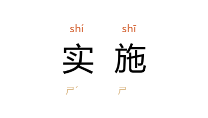 例如:「实施耕者有其田。」、「政策实施须符合民意。」