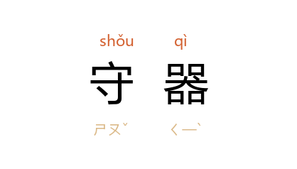 ⒈ 守护国家的重器。器,指象征君权的器物,如祭器、车服等。