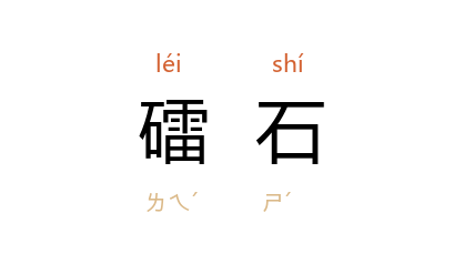 引《左传·襄公十年》「攻偪阳亲受矢石」句下唐·孔颖达·正义:「郑玄云:『用金石者作枪雷之属。』雷即礌也,兵法守城用礌石以击攻者。」
