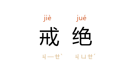 引谢觉哉 《不惑集·学习常谈》:“从没有经验到有经验,不忽视一点点好的或坏的经验,好的一定推广,坏的一定戒绝。”王西彦 《一个小人物的愤怒》:“马希贤 先生已经下大决心戒绝吸烟了。”