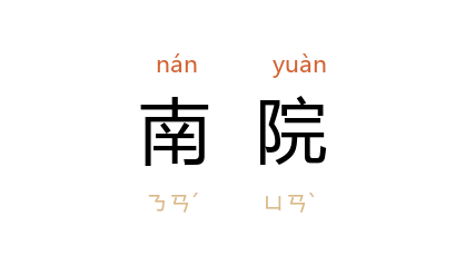 ⒉ 指 契丹 的南枢密院,以其官署居大内之南,故名。 《辽史·百官志一》:“契丹 南枢密院。掌文铨、部族、丁赋之政,凡 契丹 人民皆属焉。以其牙帐居大内之南,故名南院。