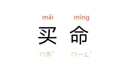 引元 施惠 《幽闺记·虎头遇旧》:“无非买命与赎身,但随行有何囊篋貲费?”清 梁绍壬 《两般秋雨盦随笔·致赵秋舲书》:“私开法网,广搜买命之钱。”谢觉哉 《整骄傲的方子》:“强盗吓唬人,目的在使人献出买路钱或买命钱而不敢抵抗。”