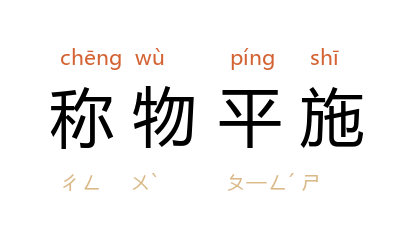 引《易·谦》:“君子以裒多益寡,称物平施。”孔颖达 疏:“称物平施者,称此物之多少,均平而施。”《汉书·律历志上》:“权者,銖、两、斤、钧、石也,所以称物平施,知轻重也。”明 唐顺之 《条陈蓟镇补兵足食事宜》:“糴之贵贱因地腴瘠,假如腹里糴价五钱六钱,则穷边断是八钱九钱,奈何使苦寒与逸肥一样同折,非称物平施之义也。”