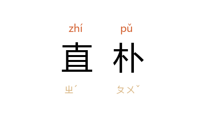 引端木蕻良 《三月夜曲》:“卖布的泼浪鼓卜楞卜楞响着……音色钝重、忧郁、直朴,相当于木制管乐器组的‘巴松管’吧。”周而复 《白求恩大夫》九:“何况他是一个直朴的人,他一时也想不出一大堆感谢的话。”