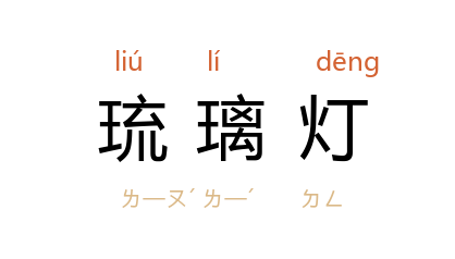 引《警世通言·宋小官团圆破毡笠》:“其时香客未到,烛架尚虚,庙祝放下琉璃灯来取火点烛。”《西湖佳话·灵隐诗迹》:“忽见殿上琉璃灯下,蒲团之上,有一个老僧在那里打坐。”鲁迅 《三闲集·怎么写》:“一粒深黄色火,是 南普陀寺 的琉璃灯。”