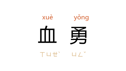 ⒈ 犹言血气之勇。古人以为生自血液的勇气。 《燕丹子》卷中:“夏扶,血勇之人,怒而面赤; 宋意,脉勇之人,怒而面青; 武阳,骨勇之人,怒而面白。
