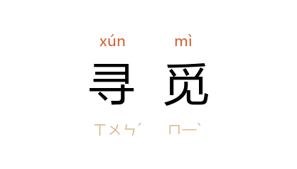 ⒈ 探求。唐·元稹〈遣行诗〉十首之七:「寻觅诗章在,思量岁月惊。」也作「寻求」、「寻找」。