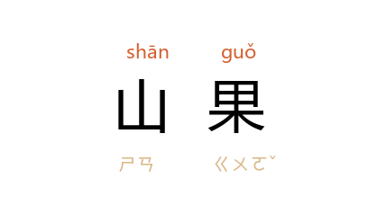 引晋 支遁 《咏怀诗》之四:“芳泉代甘醴,山果兼时珍。”唐 杜甫 《北征》诗:“山果多琐细,罗生杂橡栗。”宋 杨万里 《花果》诗:“野花山果絶芳馨,借问行人不识名。”赵树理 《李有才板话》二:“靠后墙摆着些筐子、箩头,里面装的是村里送给他的核桃、柿子……因此你要一进门看正面,好象个小山果店。”