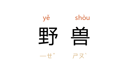 ⒈ 家畜以外的兽类,天性凶猛,尤指食肉的野生哺乳动物。