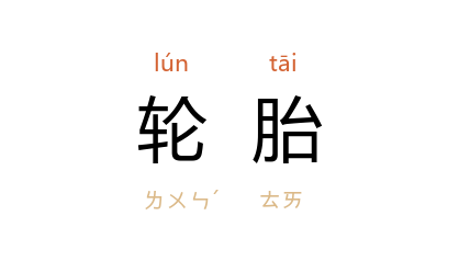 ⒈ 汽车、拖拉机、自行车等交通运输工具的轮子外围安装的环形橡胶制品。一般分内胎外胎两层。内胎较薄,可以充气;外胎厚,耐磨,可以保护内胎。轮胎中充满压缩空气以后,可以减弱沿地面行驶时产生的震动。通称车胎或轮带。
