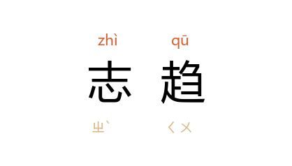 引《宋书·周朗传》:“朗 少而爱奇,雅有风气,与 嶠 志趋不同。”老舍 《赵子曰》第三:“赵子曰 仰着脸看喷出的烟,心中人生问题与自己的志趋的萦绕确是稀薄多了。”