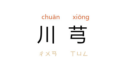 ⒈  也称“芎”。伞形科。多年生草本。根状茎黄褐色。羽状复叶。花白色。产于中国四川、云南等地。根状茎可入药,能活血、调经、止痛,治感冒风寒。